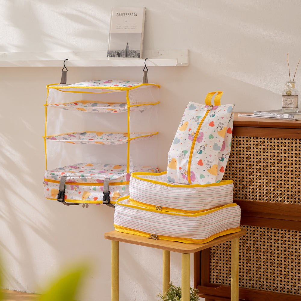 Pack with love and stay tidy on the go! The Peanuts Snoopy "Peek-A-Boo" 4-Piece Packing Cube Set features adorable Snoopy designs and four versatile cubes to keep your luggage cute, compact, and organized!