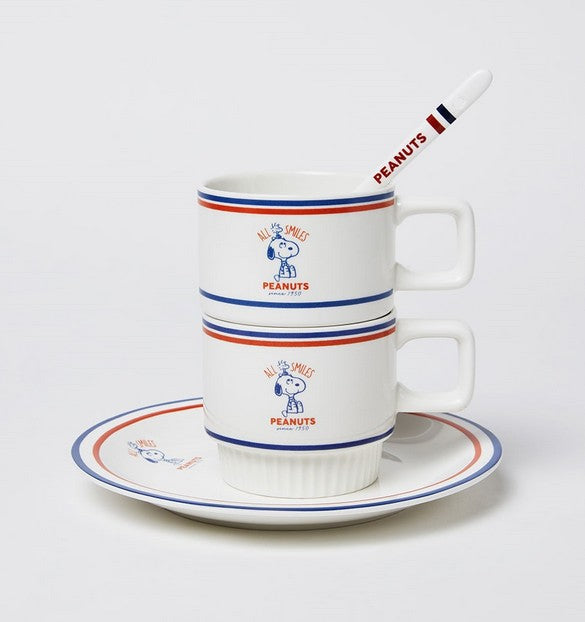 Start your day with calm and charm — the Peanuts Snoopy “All Smiles” Tea Cup & Plate Set features two neatly stacked cups, a matching plate, and a ceramic spoon, all designed with a clean retro design and Snoopy’s timeless charm for a cozy, minimalist tea time!