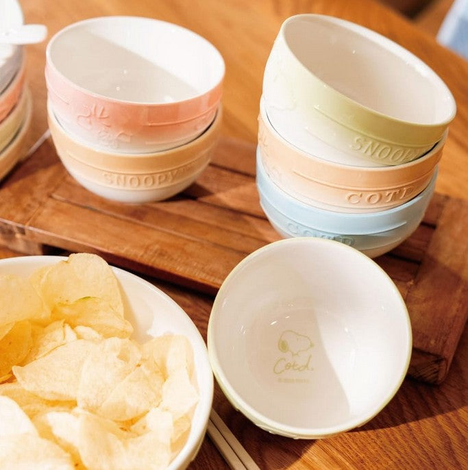 - Features Snoopy & Woodstock in a cheerful, mealtime design