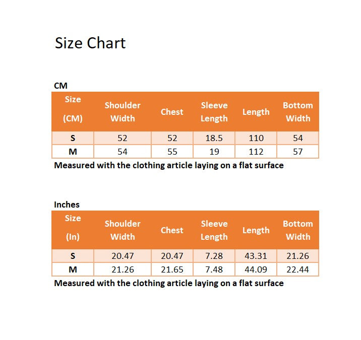 - *Please refer to the Size Chart to pick the best size for you (Note the various measurements in cm and in, measured on a flat surface)