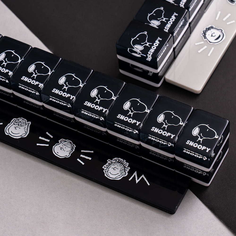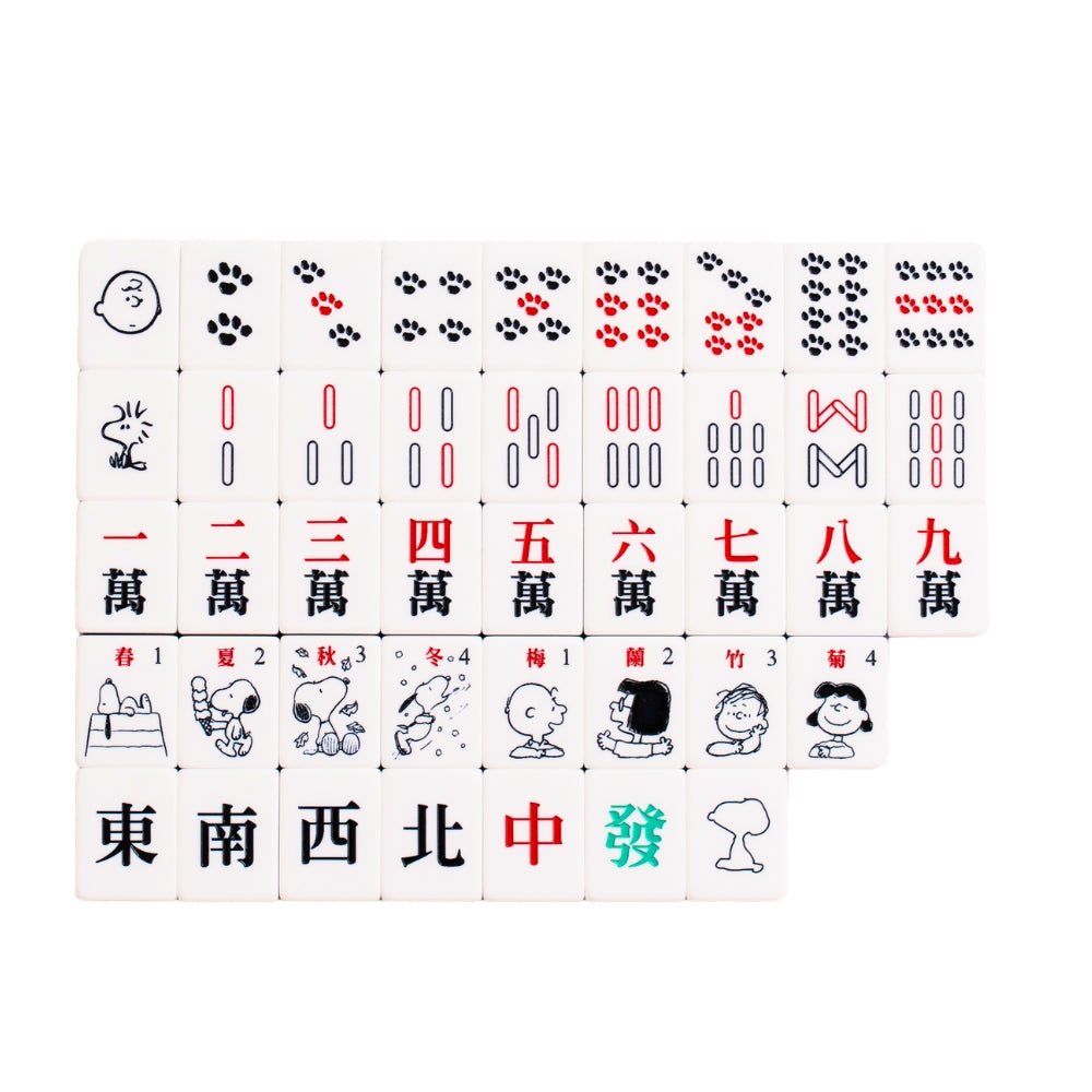 - Featuring Snoopy and Peanuts characters on the tiles, pushers, and case