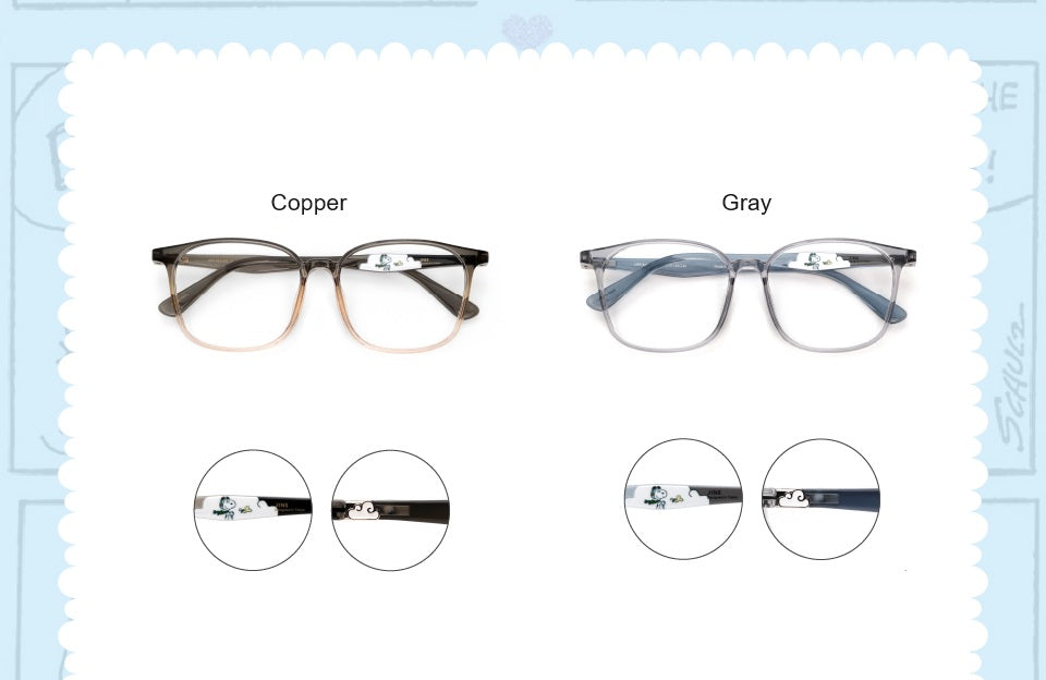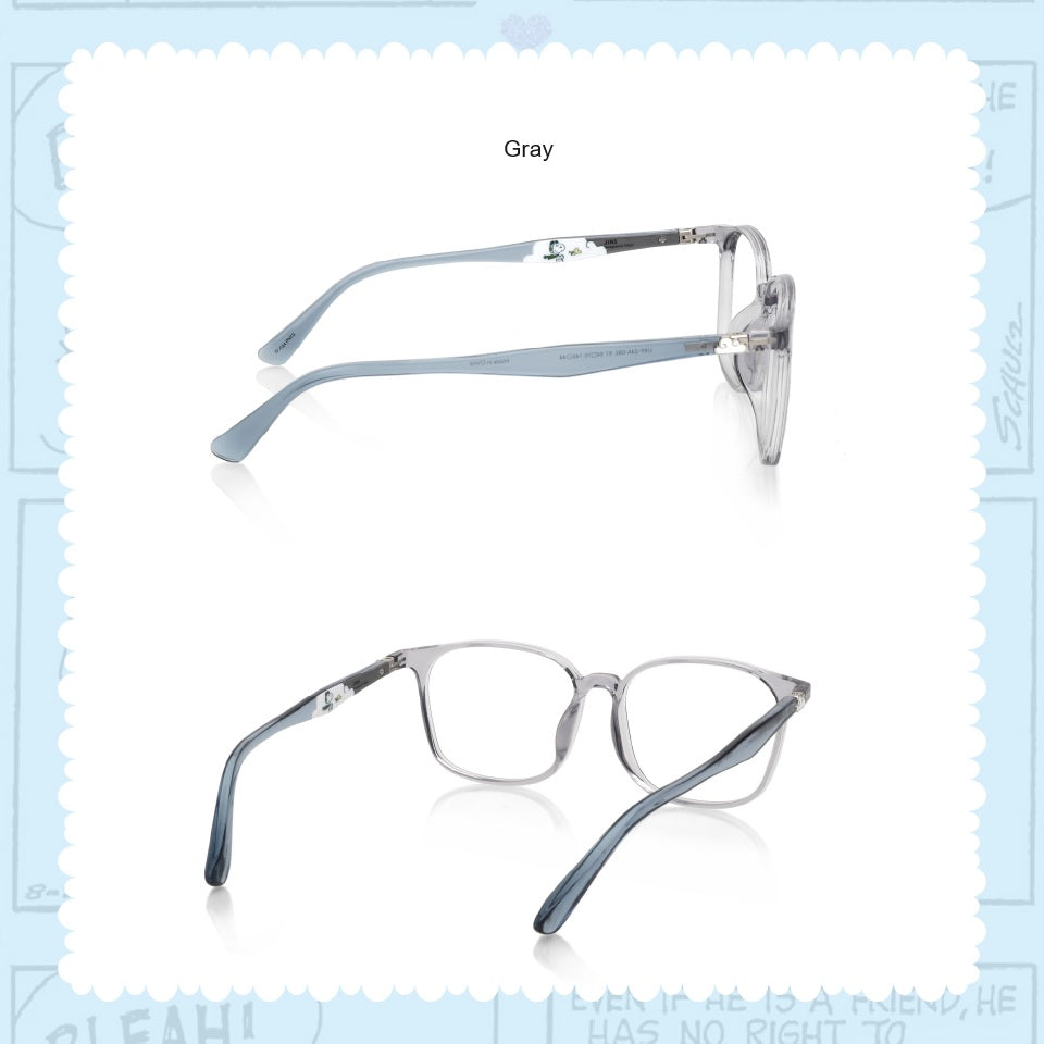 - Each eyeglass frame comes with a Snoopy eyewear case and a Snoopy cleaning cloth