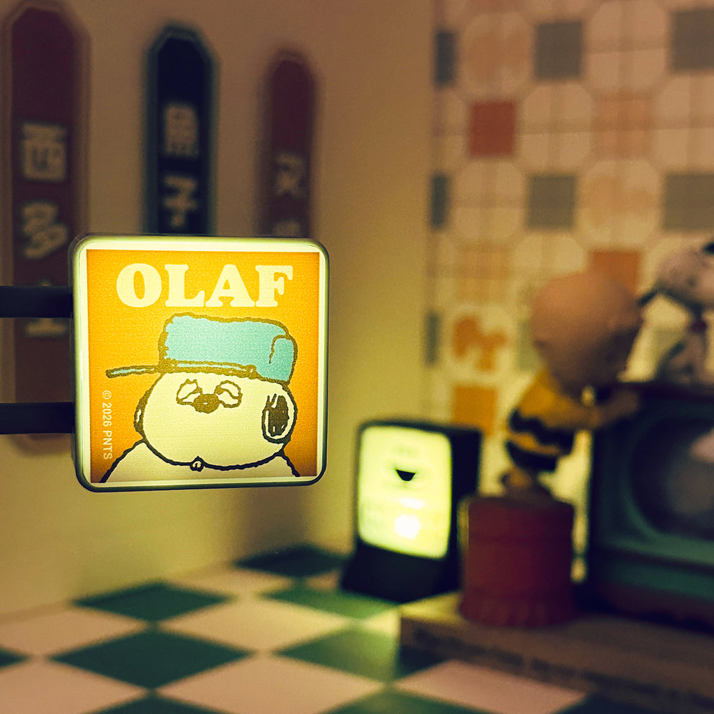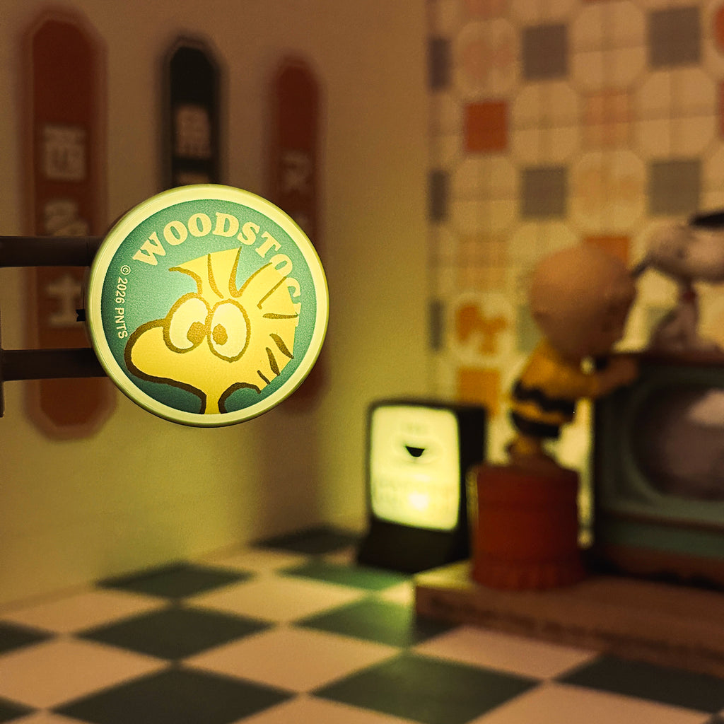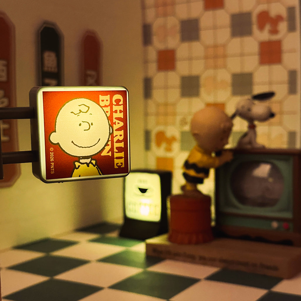 - Set of 6 light-up mini signs, each featuring a different Peanuts character