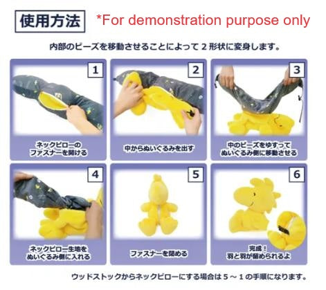 - Snoopy can be placed inside a pouch to become a travel pillow