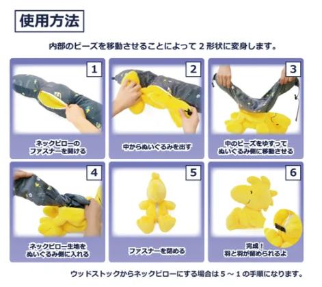 - Snoopy can be placed inside a pouch to become a travel pillow